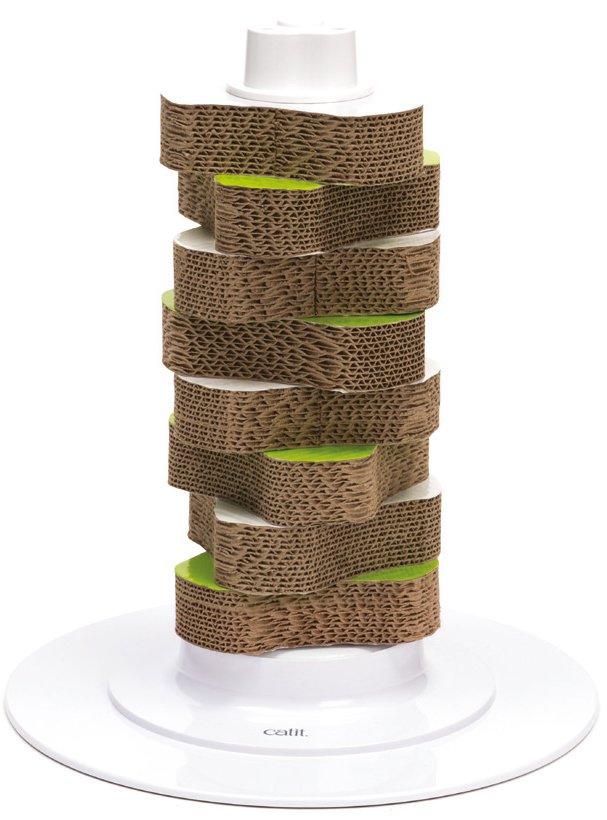 - Drapak kartonowy Catit składa się z wytrzymałej górnej śruby, korpusu i ekstra stabilnej szerokiej podstawy z 8 elementami z tektury falistej.