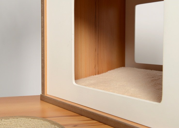 - Sześcienne budki są idealne do odpoczynku. Dwa wejścia nie pozwolą, aby pupil poczuł się osaczony.