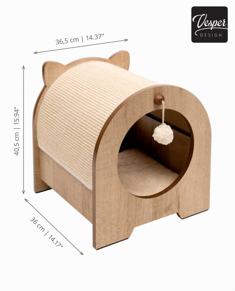 - Legowisko z drapakiem Catit Vesper Minou dla kota jest wykonane z płyty MDF z odpornym na zarysowania laminatem dekoracyjnym w kolorze dębowym.