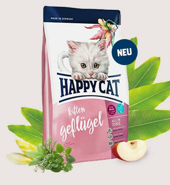 Happy Cat Kitten Geflügel to idealna karma dla wrażliwych kociąt od 5 tygodnia do 6 miesięcy. Dostosowany przepis stanowi idealną podstawę do stabilnego wzrostu. Z suchym pokarmem Happy Cat dajesz kotu wszystko, czego potrzebuje, aby dorosnąć duże i mocne. Happy Cat Kitten Geflügel przygotowuje się z pysznego drobiu i delikatnego łososia. Jest to zrównoważona i smaczna sucha karma. Bardzo małe herbatniki ułatwiają żucie. Nie zapominając o naszej gwarancji smaku! Kolejnym plusem jest holistyczne i wyjątkowe Happy Cat Natural Life Concept® .