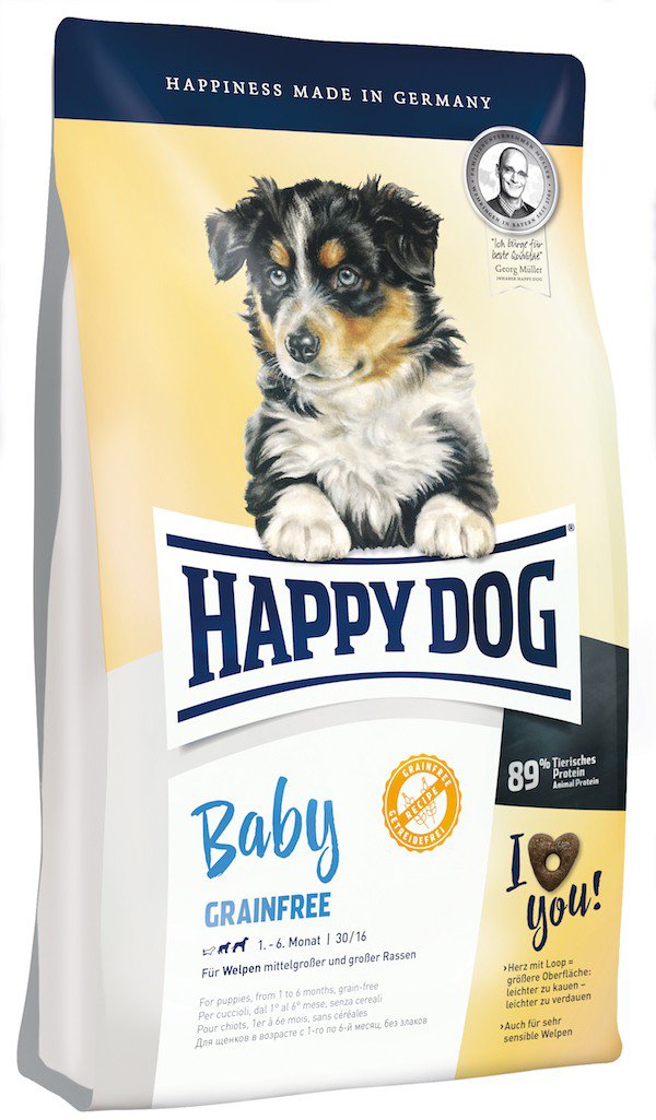 - Happy Dog Baby Grainfree została zaprojektowana specjalnie dla szczególnie wrażliwych szczeniąt wszystkich ras od 4 tygodnia życia.