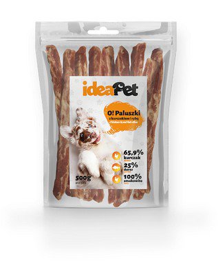 Daj swojemu psu przyjemność z jedzenia, wybierając delikatne i smaczne IdeaPet Paluszki z Kurczakiem i Rybą.