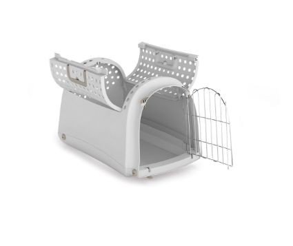 Wykonany z trwałego, łatwego do czyszczenia tworzywa, błękitno-szary Linus Cabrio łączy nowoczesny wygląd z praktycznymi rozwiązaniami. Wyposażony w otwierany dach typu cabrio, zapewnia wygodny dostęp do zwierzaka i ułatwia jego wkładanie oraz wyjmowanie – bez stresu i szarpania.