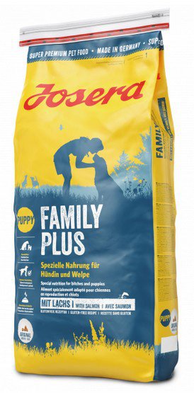 Josera Family Plus to pełnoporcjowa karma, której kompletny i zrównoważony skład zapewnia sukcesywne i zdrowe odżywianie dla przyszłych matek i ich potomstwa. Dając swojemu psu tę doskonałą karmę, dbasz o jego zdrowie, dobre samopoczucie i pełen energii start w nowy etap życia.