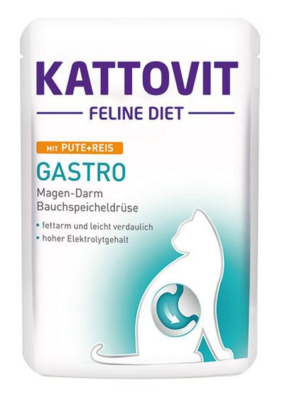 Te mogą się przejawiać w różnej postaci - np. jako wymioty, zaburzenia trawienne, biegunka lub zaparcia. Aby nie obciążać dodatkowo układu pokarmowego, w skład Kattovit Gastro wchodzą lekkostrawne białka. Mimo swojej dietetyczności, dostarczają one odpowiednio dużo energii. Zredukowana zawartość włókien i tłuszczu odciąża układ trawienny. Z tego powodu karma może być podawana również kotom osłabionym po operacjach. Niedobór soli mineralnych, spowodowany przez odwodnienie, może być szybko uzupełniony dzięki elektrolitom zawartym w karmie. Istotna tauryna oraz inne ważne witaminy i sole mineralne zapewniają kotu zrównoważoną dietę i dostarczają mu wszystkich substancji, jakich potrzebuje.