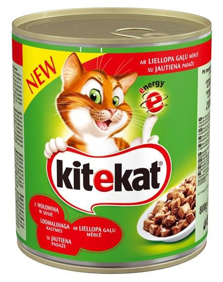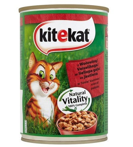 Kitekat z wołowiną w sosie na bazie świeżego mięsa dla dorosłych kotów.Zawiera starannie przyrządzone, świeże mięso, które dostarcza kotu codziennej, niezbędnej do zabawy porcji energii. Optymalna zawartość wysokiej jakości kwasów tłuszczowych oraz witamin zapewnia wspaniały wygląd dzięki lśniącej sierści oraz dba o jego zdrowie i samopoczucie.