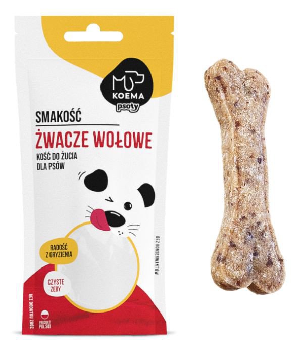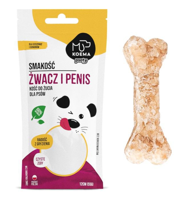 Koema Smakość Kość do Żucia to apetyczna przekąska, idealna do zaspokojenia naturalnej potrzeby gryzienia Twojego psa. Bezpieczna dla psów wszystkich ras, nie wywołuje alergii i jest idealna dla każdego pupila.
