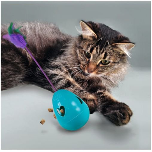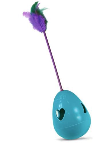 Do środka niebieskiego jaja można wsypać ulubione kocie przysmaki i sprawić pupilowi niespodziankę. Jednym dotknięciem łapy - kot będzie mógł kołysać zabawkę.