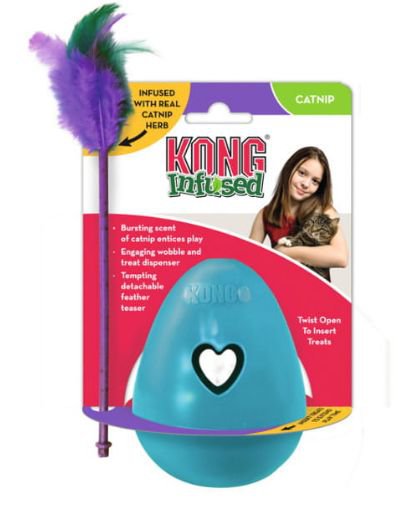 Zabawka dla kota z firmy KONG. Dzięki kocimiętce oraz piórkom zamieszczonym na górze zabawki jest atrakcyjną formą gry dla każdego kota.