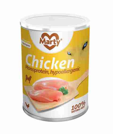 - Zawiera mięso tylko jednego rodzaju zwierząt.