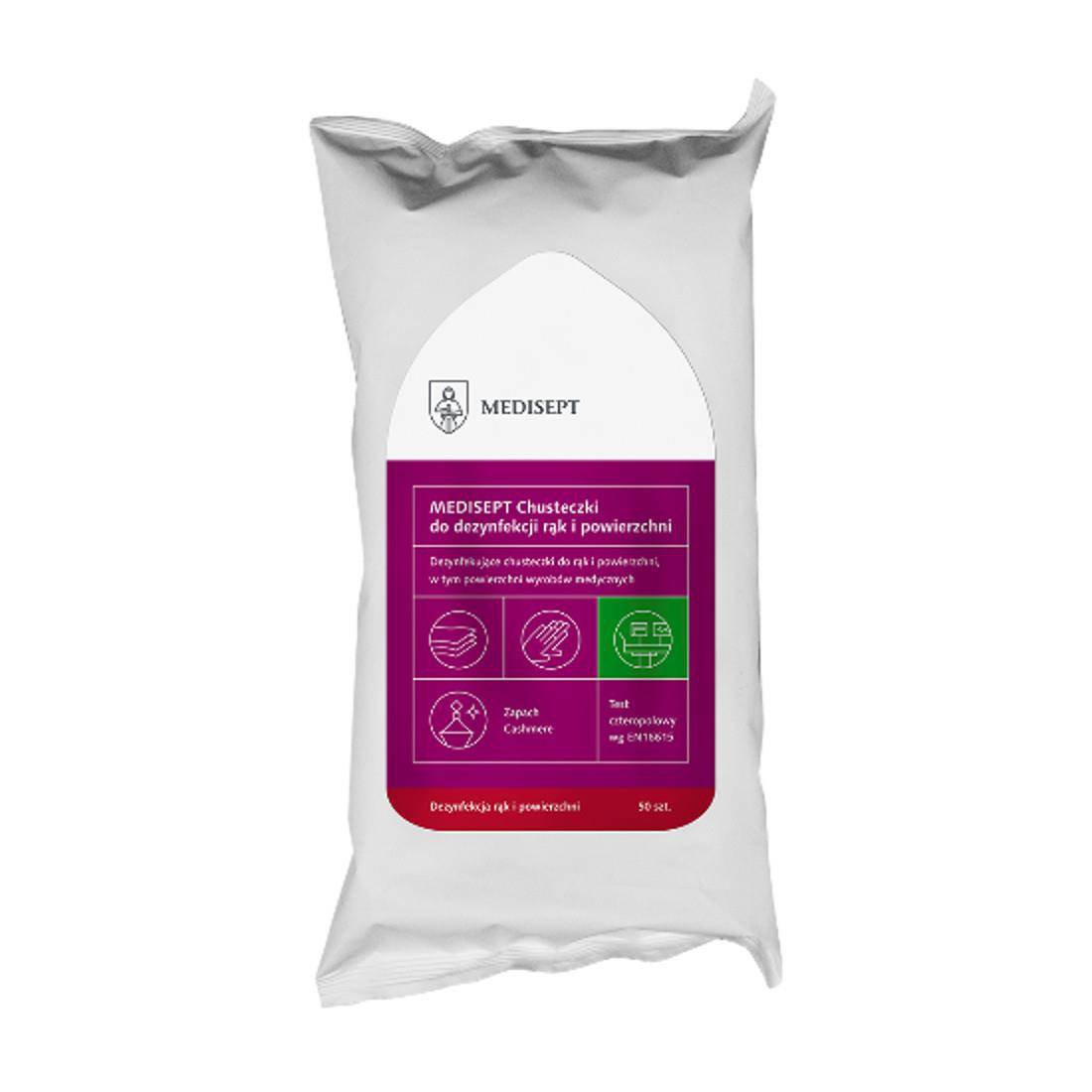 Chusteczki Medisept Cashmere są zalecane do stosowania w ochronie zdrowia, kosmetologii i w przestrzeni publicznej. Dzięki zawartości gliceryny ręce się nie wysuszają.