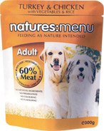 Saszetki Natures Menu stworzono aby zapewnić psom wszystkie niezbędne składniki odżywcze z naturalnie zbilansowanych surowych składników. Saszetki Natures są wolne od składników chemicznych oraz konserwujących.