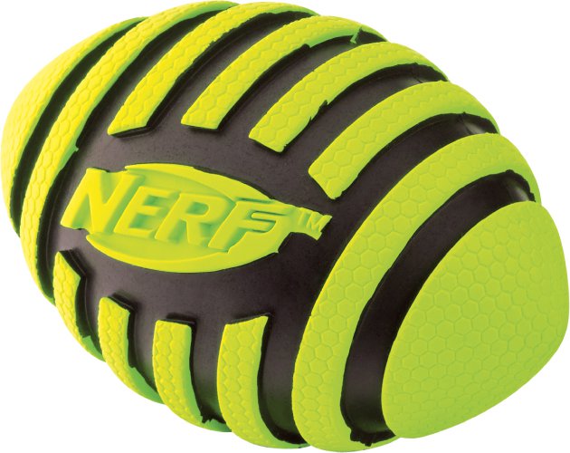 - Spiralna piszcząca piłka rugby NERF to zabawka przeznaczona dla psów, które kochają biegać i aktywnie spędzać czas.