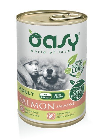 Oasy One Protein Adult jest to bezglutenowa karma dla psów. Zawiera wszystkie niezbędne składniki do diety psa. Mokra karma dla psów w wielu smakach. Zaspokoi nawet najbardziej wybredne psy. Idealna dla wszystkich psów, a w szczególności dla psów wrażliwych, cierpiących na alergie skórne i pokarmowe. Oasy to karma na jednym źródle białka. Jest to wysokiej jakości białko pochodzące z mięsa zwierzęcego lub rybnego. Bezglutenowa karma dla psów nie zawiera zbóż, soi, barwników, konserwantów oraz GMO. Starannie wyselekcjonowane składniki, mają za zadanie chronić psa przed alergiami oraz dostarczyć mu wszystkich składników mineralnych. Bardzo duża zawartość mięsa osiągająca 94% składu. Źródłem węglowodanów w karmie OASY są ziemniaki lub marchew.