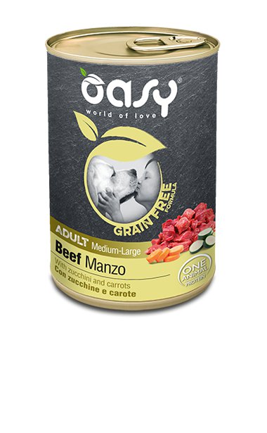 Oasy Grain Free to karma stworzona dla psów, które wymagają diety o niskim potencjale alergicznym. Karma dostępna w wersji dla szczeniąt (Puppy) i psów dorosłych ras średnich i większych (Adult).