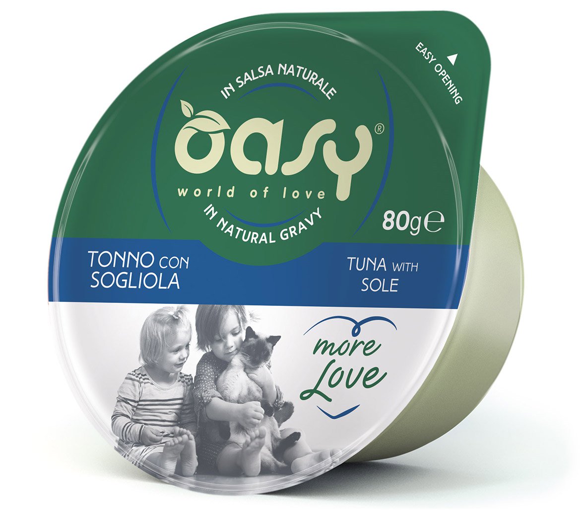 SKŁAD: Tuńczyk 60%, Sola (Brachirus Panoides) 5%, ryż 1%, naturalne aromaty 1%, modyfikowana skrobia z tapioki 0,83%. SKŁADNIKI ANALITYCZNE: Białko surowe 16,65%, zawartość tłuszczu 0,49%, włókno surowe 0,11%, popiół surowy 0,97%, wilgotność 79,05%.