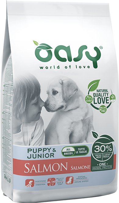 Łosoś świeży (30%), ryż, odwodniony łosoś (15%), białko ryżowe, tłuszcz zwierzęcy, hydrolizowany łosoś, wysłodki buraczane (2,5%), białko ziemniaczane, drożdże piwne (1%), olej z ryb, chlorek sodu, chlorek potasu, fosforan jednowapniowy, inulina (1000 mg/kg, źródło fruktooligosacharydów), imbir (0,1%), mannooligosacharydy (1000 mg/kg), jukka Mojave (170 mg/kg).