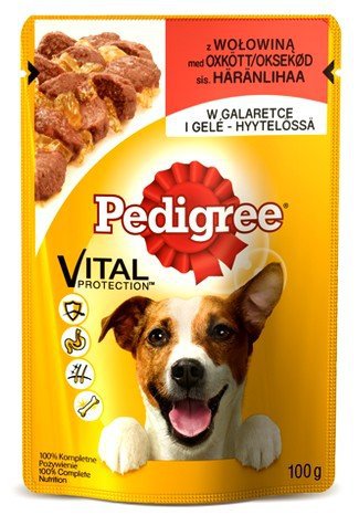 Starasz się dawać swojemu psu wszystko, co najlepsze. Dbasz o jego specjalne żywienie, aby Twój przyjaciel był zdrowy i silny. Aby zapewnić swojemu czworonogowi ochronę przed chorobami i wysoką odporność, podaj mu Pedigree z wołowiną w delikatnej galaretce. Białko, kwasy tłuszczowe, witaminy i substancje mineralne zapewnią Twojemu psu zdrową, lśniącą sierść, mocne kości i zęby i dobre samopoczucie każdego dnia. Smak pysznego mięsnego dania w aksamitnej galaretce przypadnie do gustu nawet najbardziej wybrednemu psu.