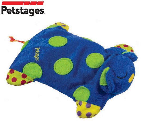 Poduszka jest wyposażona w ogonek z supełkiem, który szczeniak może żuć.