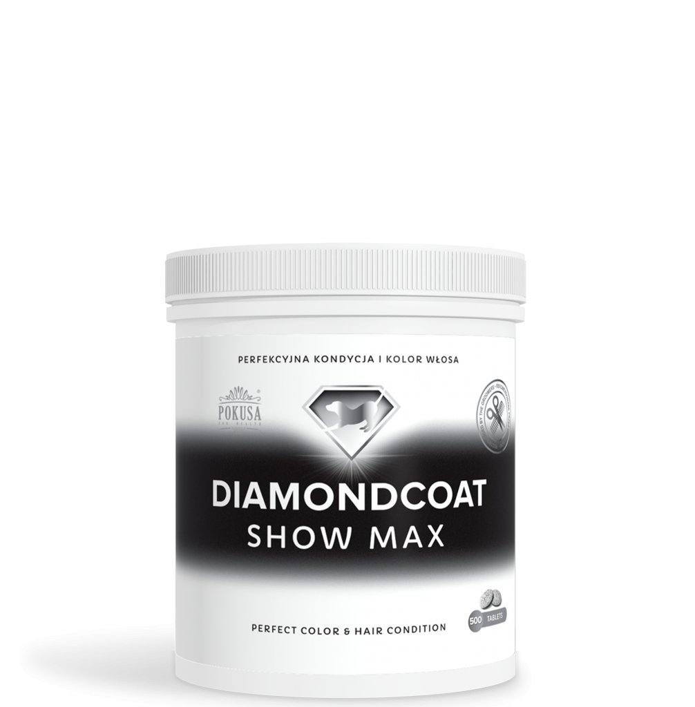 Pokusa DiamondCoat Show Max to specjalny preparat dietetyczny stworzony z myślą o psach wystawowych, którzy wymagają perfekcyjnej kondycji włosa oraz podkreślenia pigmentacji skóry, takiej jak nosa czy warg. Ten preparat jest zalecany w przypadkach nadmiernego wypadania sierści, braku jej połysku, intensywnego koloru oraz wzmożonego zgrubienia i złuszczania naskórka.