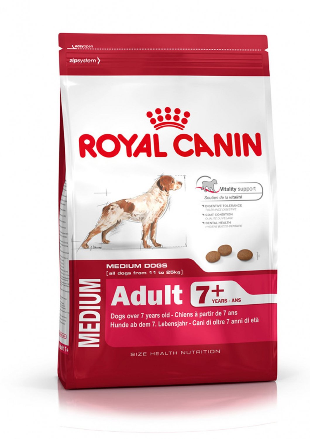 Rozwiązanie żywieniowe opracowane specjalnie dla dorosłych psów ras średnich, powyżej 7 roku życia.