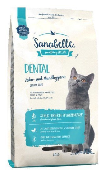Sanabelle Dental to karma stworzona specjalnie dla dorosłych kotów, która ma za zadanie dbać o zdrowie jamy ustnej. Często koty mają problemy z zębami i przykrym zapachem z pyska, dlatego Sanabelle wychodzi im na przeciw.