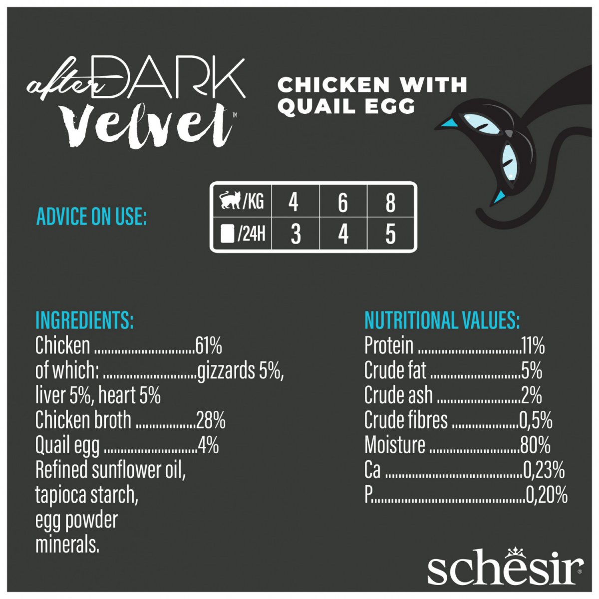 Schesir After Dark Velvet Mousse karma mokra dla kota kurczak z jajkami przepiórczymi 80g
