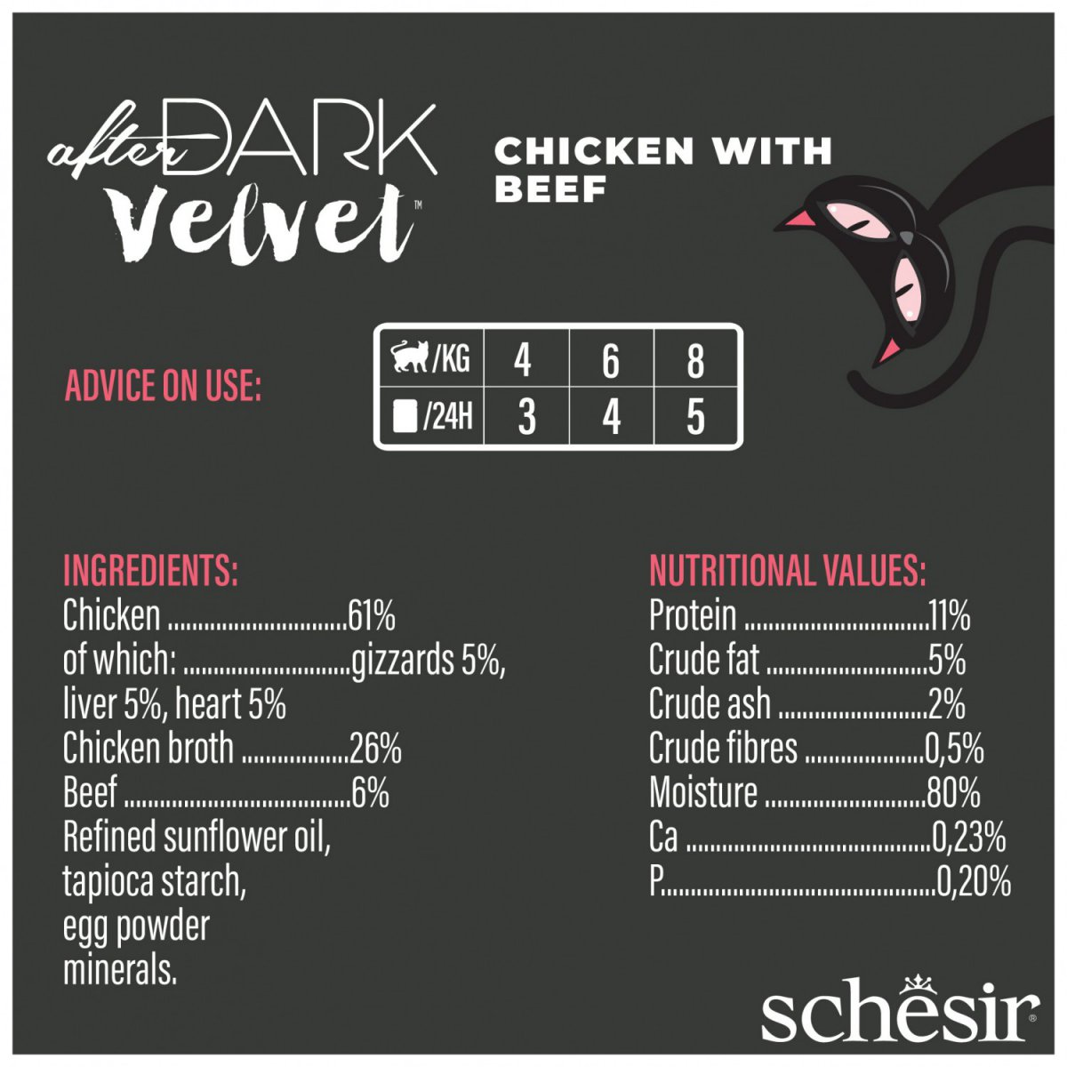 After Dark Velvet Mousse Kurczak z Wołowiną to codzienna porcja luksusu dla Twojego kota – zdrowa, naturalna i smakowita do ostatniego kęsa.