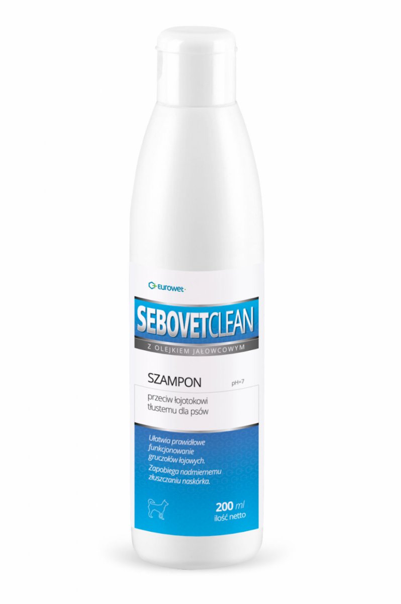 Sebovet - Clean jest dermokosmetykiem weterynaryjnym myjącym, specjalnie przystosowanym dla psów z objawami łojotoku tłustego. Dziegieć z jałowca zawarty w szamponie wpływa na prawidłową czynność gruczołów łojowych oraz zapobiega nadmiernemu złuszczaniu naskórka.