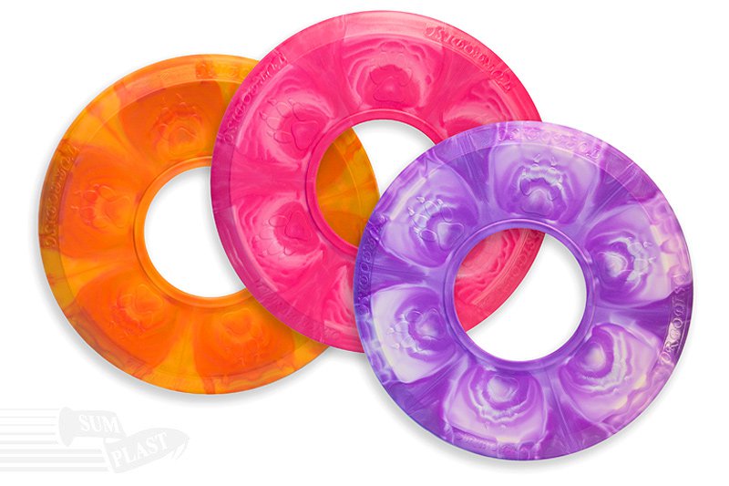 Dysk wykonany z wytrzymałej, elastycznej gumy aromatyzowanej zapachem wanilii. Zabawka dla psa świetnie nadająca się do rzucania i aportowania. Dobrze sprawdza się również podczas zabaw w wodzie, nie tonie lecz unosi się na powierzchni. Jest miękki i nie posiada ostrych krawędzi, dzięki temu jest chętniej aportowany przez psy niż zabawki z twardego plastiku.