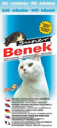 Certech Żwirek Super Benek Antybakteryjny - Biały wchłania wilgoć, zapachy, hamuje rozwój bakterii. Białe regularne ziarna zapewniają estetyczny wygląd oraz uniemożliwiają zaczepianie i zatrzymywanie się na futrze zwierzęcia – co znacznie zmniejsza wynoszenie żwirku poza kuwetę. Zużyty żwirek zbryla się oraz zmienia barwę, łatwo dając oddzielić się od świeżego. Białe granulki zbrylają się w kształtne bryłki.