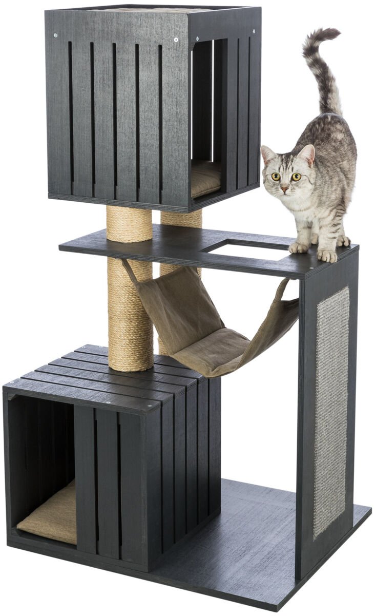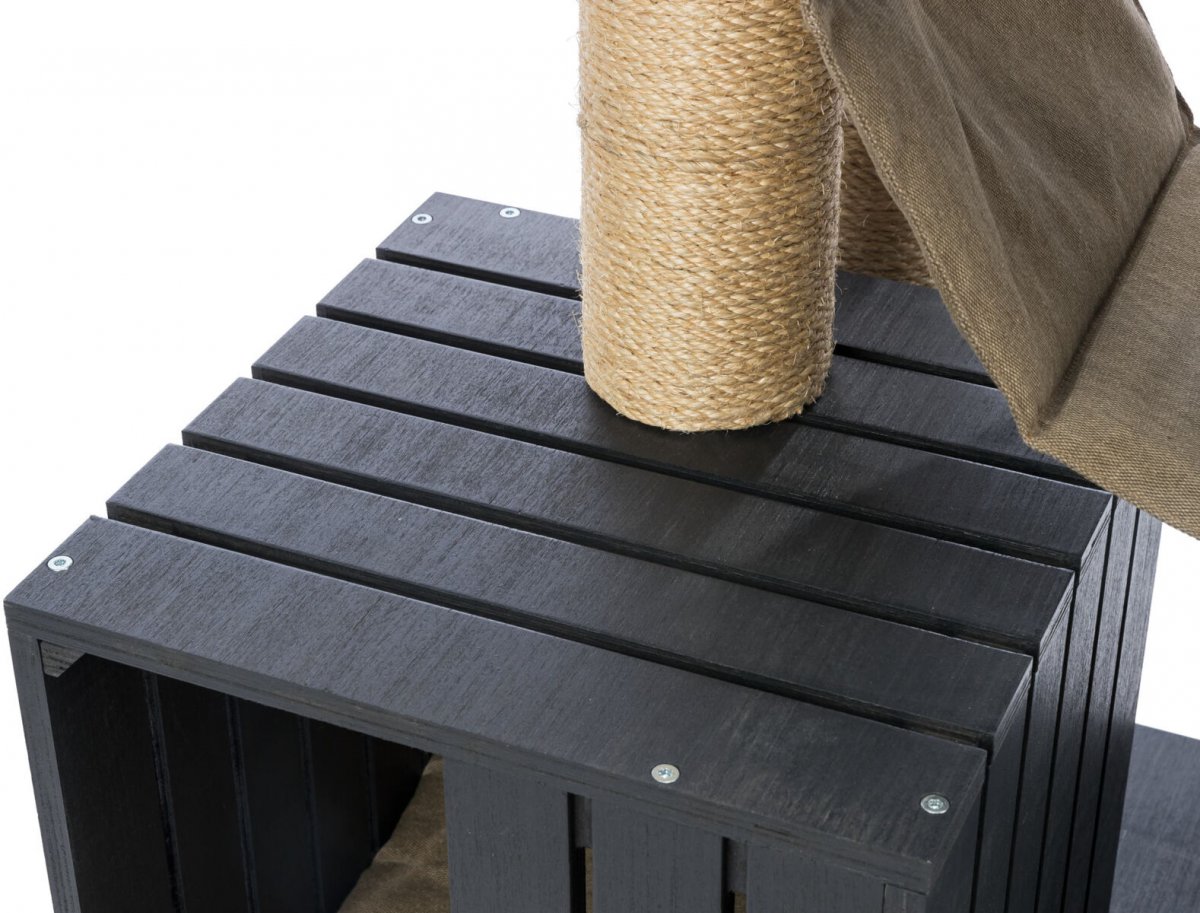 Drapak dla kota Freia to nie tylko doskonałe miejsce do odpoczynku i wspinaczki dla Twojego kota, ale także wizualnie świetny element wyposażenia Twojego salonu. Płótno w kolorze piaskowym i antracytowa, lakierowana sklejka sprawiają wrażenie marynistycznych - nasz drapak ma dwa wygodne legowiska z dwustronnymi poduszkami, przytulny hamak, jak również przytulne legowisko na górnym poziomie oraz różne miejsca do drapania i wspinania się wykonane z sizalu.