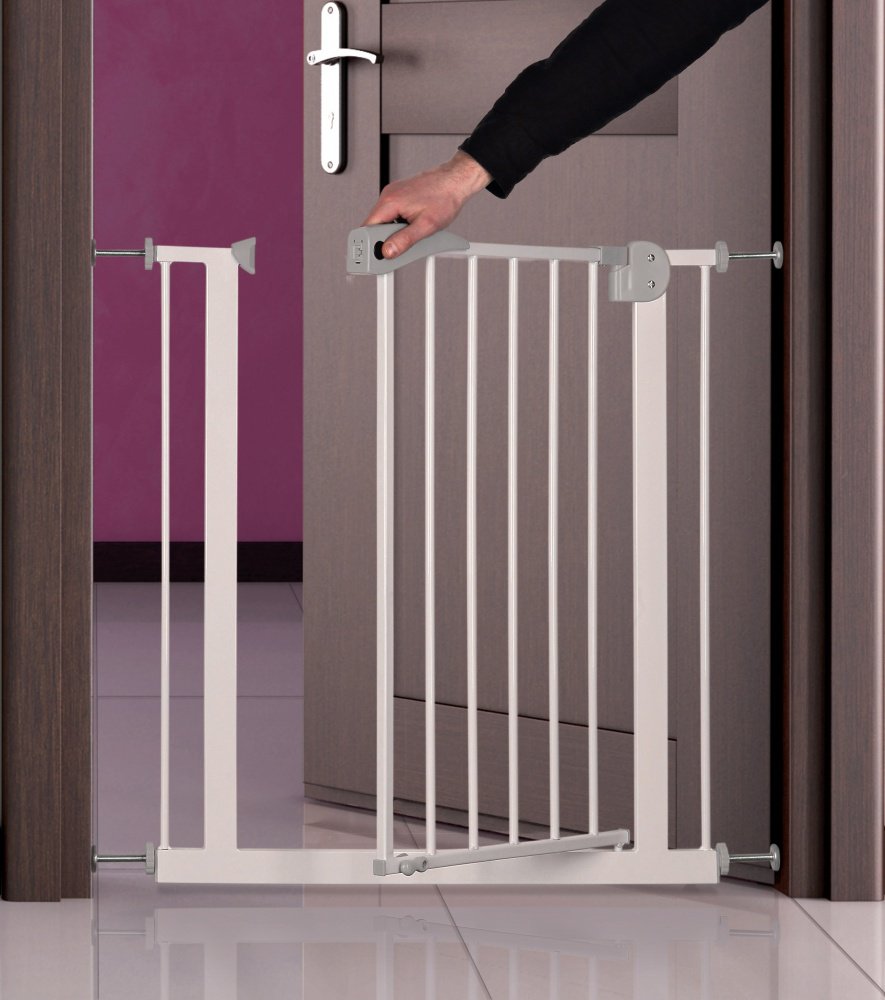 Metalowa, solidna bramka ograniczająca dostęp psom do wyznaczonych pomieszczeń czy też schodów. Idealna dla dużych i małych ras. Posiada regulowana wysokość, zamek otwierany jedna ręką i możliwość otwierania drzwi w obie strony. Łatwa do założenia (bez konieczności wiercenia dziur).