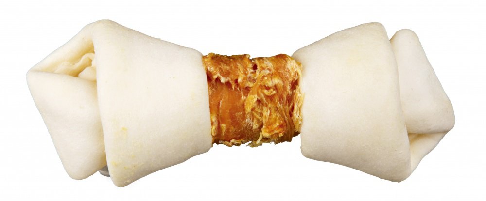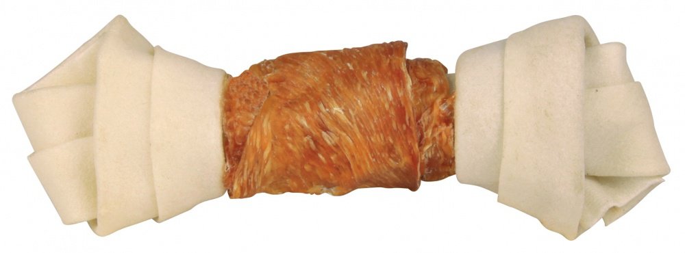 Kości wytworzone z grubej, naturalnej skóry wołowej. Doskonale czyszczą zęby - podczas żucia przez psa pasków twardej skóry, usuwają pozostałe w jamie ustnej resztki jedzenia, dzięki czemu oddech psa pozostaje świeży. Smak i zapach gryzaka sprawia, że psy uwielbiają takie przekąski. Wyjątkowo gruba skóra zapewnia więcej żucia. Została owinięta suszonym mięsem z piersi kurczaka dla jeszcze lepszego smaku