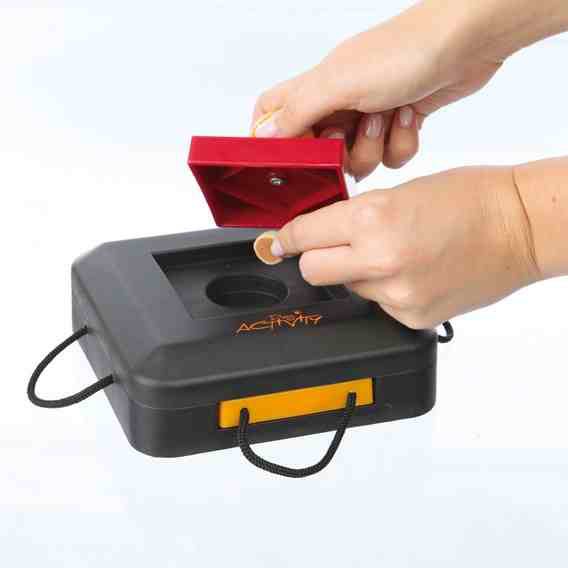 Zabawka edukacyjna dla psów z serii Dog Activity Gamble Box o 1 poziomie trudności (dla początkujących). Psy są bardzo inteligentnymi i ciekawskimi zwierzętami. Nie szukają wyzwań wyłącznie w treningu i zabawach fizycznych, ale wymagają również stymulacji i wsparcia mentalnego. Zabawka Gamble Box to pudełko wyposażone w dwie wyciągane szufladki oraz dodatkowy schowek na szczycie, w których można ukryć przysmaki, dla psa do wywąchania. W miarę ćwiczeń, pies nauczy się otwierać szufladki pociągając za uchwyty ze sznurka oraz unosić wieczko górnej skrytki za pomocą gałki, aby dostać się do upragnionych smakołyków. Została opracowana przez specjalistę Jens'a Reinholda i nadaje się dla psów w każdym wieku. W komplecie znajduje się książeczka (język angielski i niemiecki) z ciekawymi poradami jak uzyskać najlepsze efekty oraz najwięcej zabawy korzystając z produktu Gamble Box. Zabawkę należy czyścić po każdym użyciu. Doskonała zabawa, zarówno dla psa jak i właściciela. Idealna do treningu węchu oraz inteligencji psa.