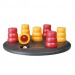 Zabawka edukacyjna dla psów z serii Dog Activity Solitaire o 1 poziomie trudności (dla początkujących). Psy są bardzo inteligentnymi i ciekawskimi zwierzętami. Nie szukają wyzwań wyłącznie w treningu i zabawach fizycznych, ale wymagają również stymulacji i wsparcia mentalnego. Gra składa się z drewnianej planszy oraz 7 plastikowych stożków. Te stożki posiadają mały otwór na szczycie, dzięki któremu pies może wyczuć smakołyki ukryte wewnątrz nich. Stożki zaprojektowano tak, aby można je było wyłącznie podnieść, a nie przewrócić. Pies będzie próbował zdobyć smakołyki, ukryte pod stożkami. W miarę ćwiczeń, pies będzie mógł unosić stożki pyskiem, aby zdobyć upragnioną nagrodę. Zabawkę należy czyścić po każdym użyciu (stożki można myć w zmywarce). Doskonała zabawa, zarówno dla psa jak i właściciela. Idealna do treningu węchu oraz inteligencji psa.