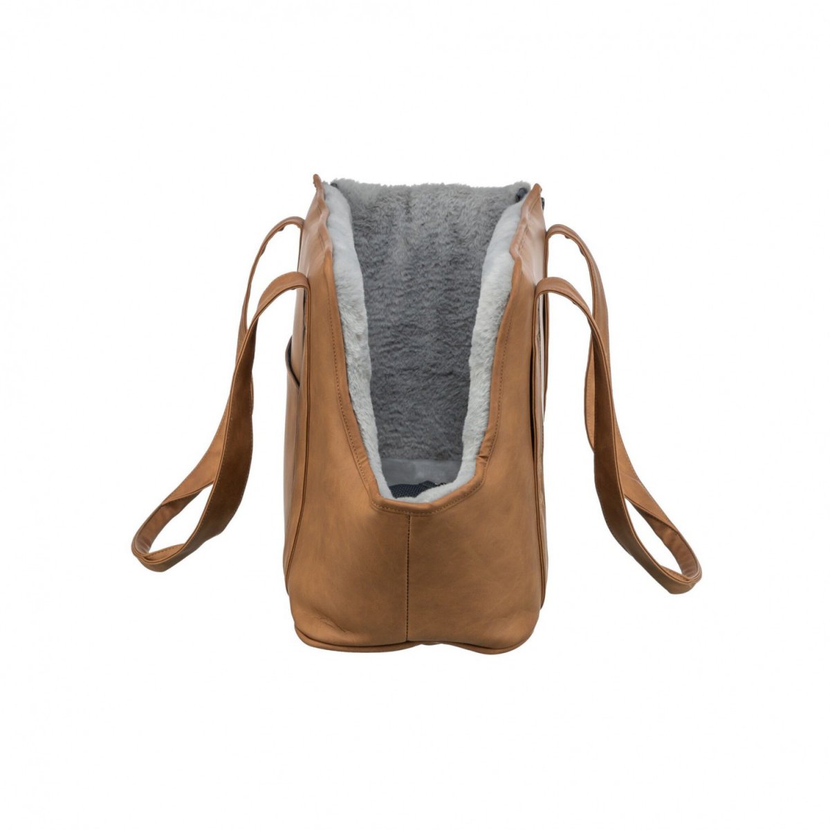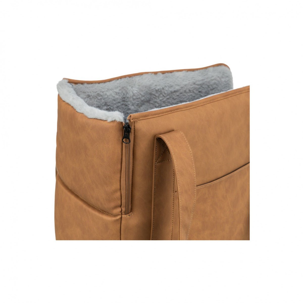 Torba Evelyn jest idealnym rozwiązaniem dla osób podróżujących z psem. Wyściełana, stabilna konstrukcja zapewnia bezpieczeństwo i wygodę podczas podróży. Posiada kieszeń zewnętrzną oraz zintegrowaną krótką smycz, co ułatwia kontrolę nad pupilem. Dodatkowo, obicie wewnętrzne z pluszu oraz sztuczna skóra z poliestru zapewniają komfort i trwałość.