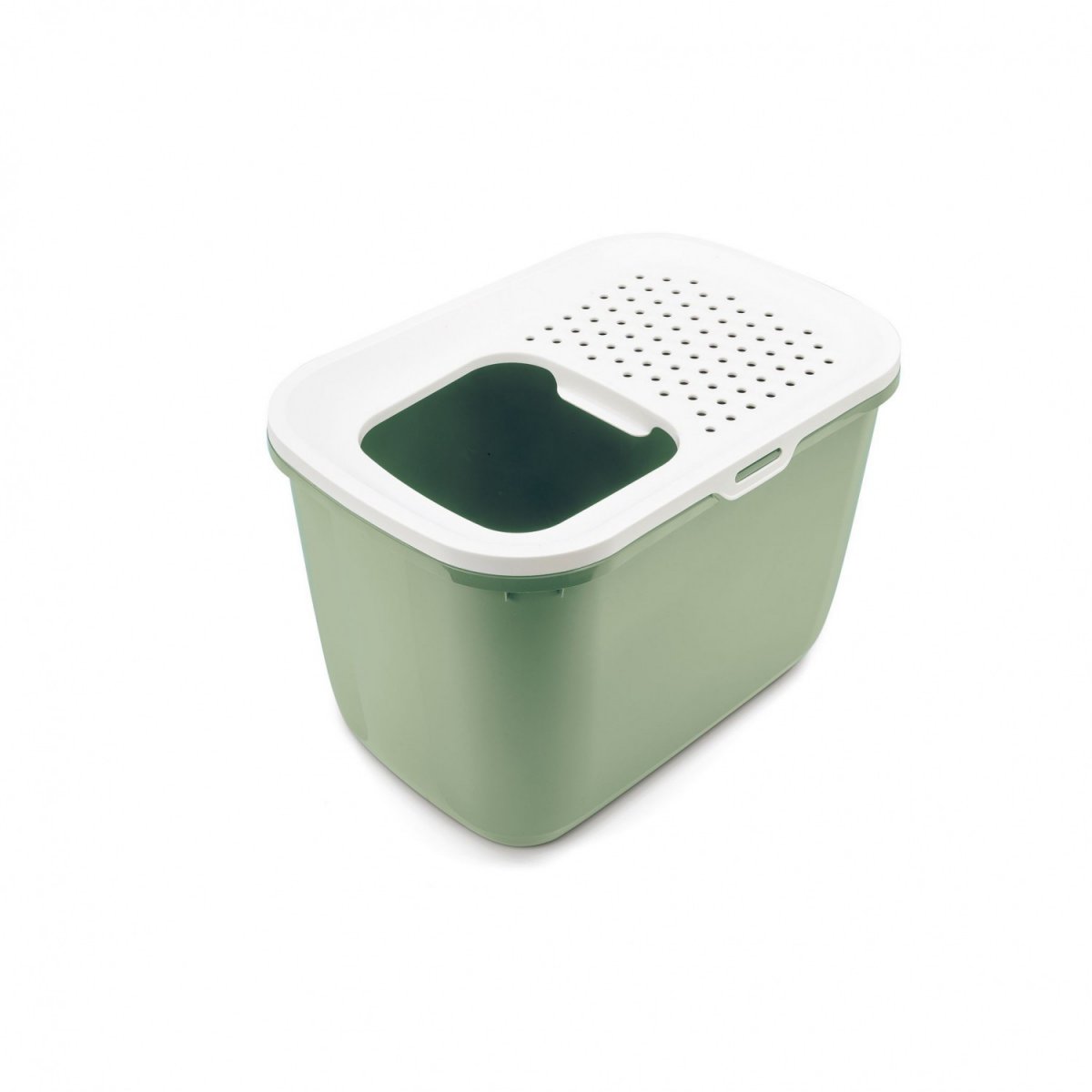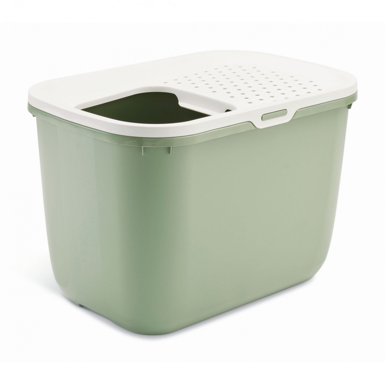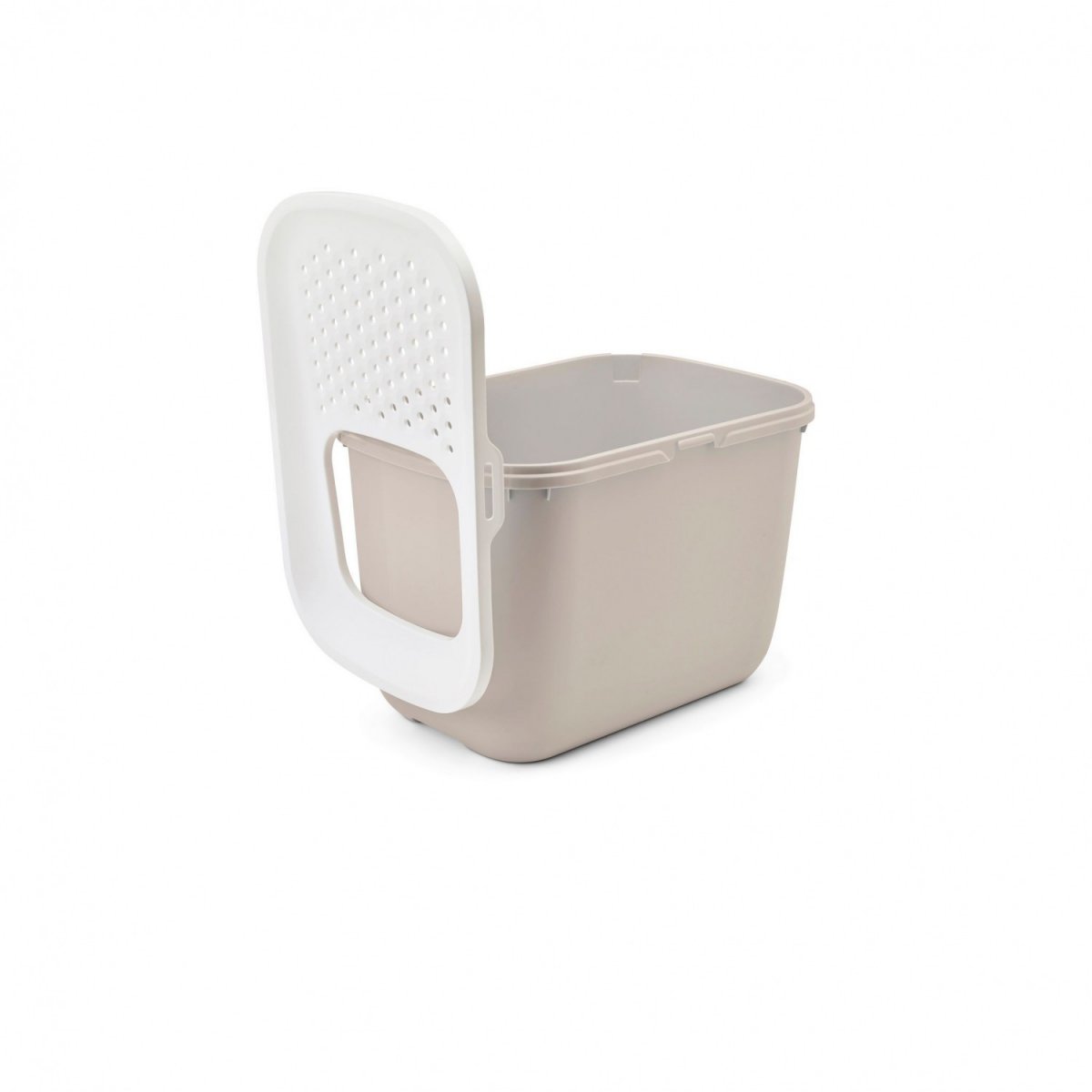 • Łatwa w czyszczeniu: Zdejmowaną pokrywę możesz podczas czyszczenia kuwety zawiesić na bocznej ściance. Wgięcia u podstawy ułatwiają podnoszenie i opróżnianie pojemnika, co czyni utrzymanie kuwety w czystości jeszcze prostszym.