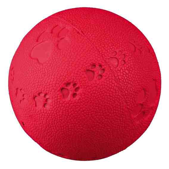 Piłka wykonana została ze specjalnego rodzaju naturalnej gumy, zdrowej dla psich zębów i dziąseł. Gumowy materiał zapewnia długą użyteczność produktu. Wewnątrz znajduje się piszczałka, która urozmaica zabawę. Trwała i dostosowana do psów w każdym wieku.