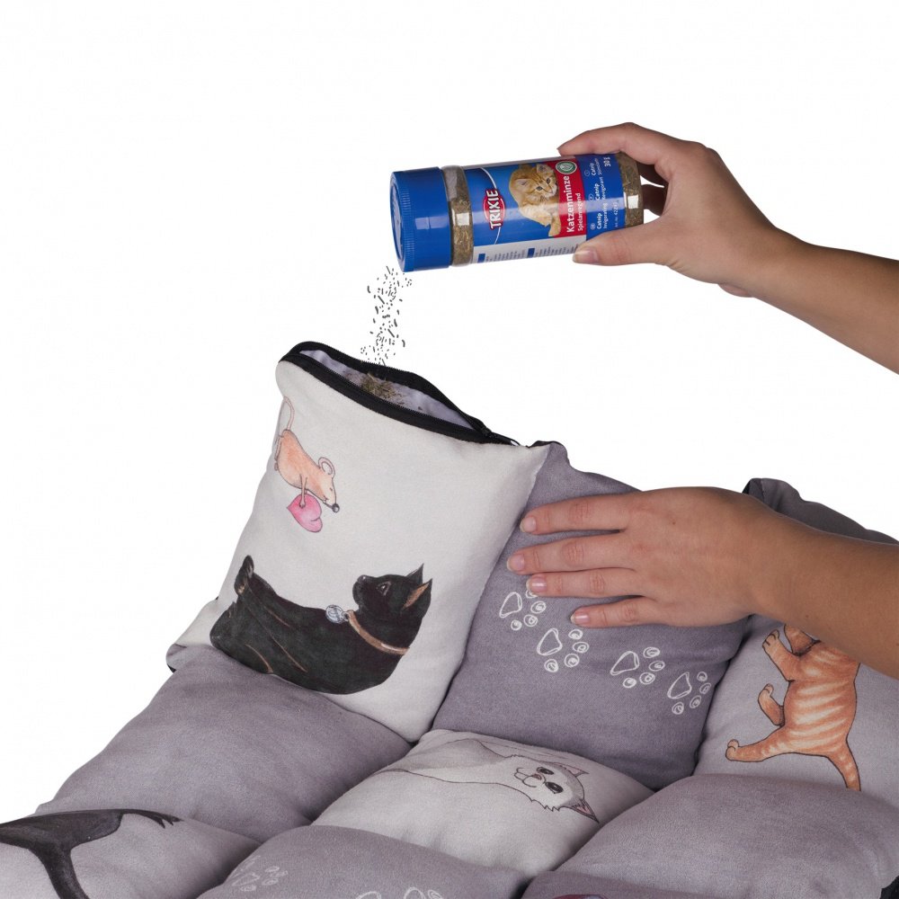 - Wszyte kieszenie można wypełnić kocimiętką lub walerianą