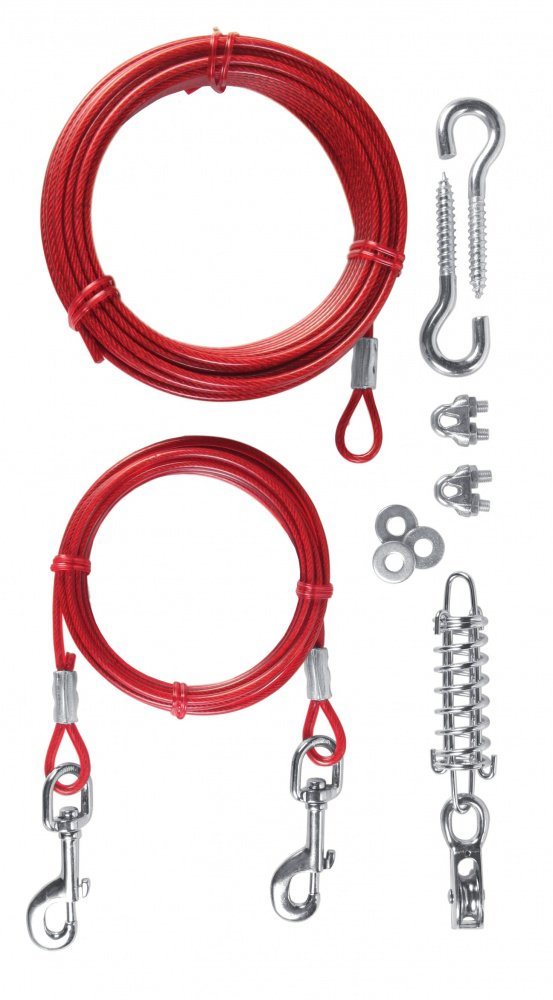 Stalowa linka w plastikowej osłonie wodoodpornej. Posiada sprężynę amortyzującą gwałtowne szarpnięcia. Zabezpiecza w ten sposób psa przed urazami i daje mu dużo swobody.