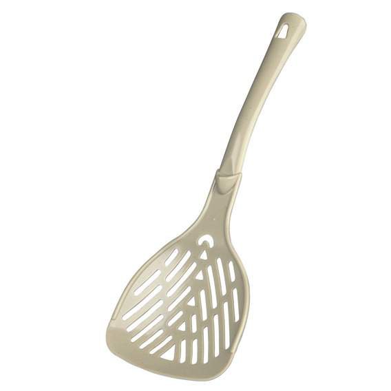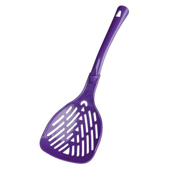 Łopatka do czyszczenia kuwety, posiada otwory dopasowane do żwirku, dzięki którym wyjątkowo dokładnie przesiewamy nieczystości pozostawiający jedynie czysty żwirek (czysty wypada z łopatki, pozostają na niej jedynie odchody i bryłki żwiru). Łopatki w różnych kolorach (sprzedawane losowo).