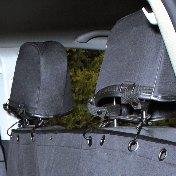 Mata jest łatwa do zamocowania przy użyciu zagłówków, dzięki czemu jest stabilna i nie przesuwa się podczas jazdy. Chroni fotele przed otarciami, plamami i zanieczyszczeniami, zapewniając im dłuższą żywotność.