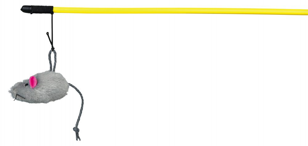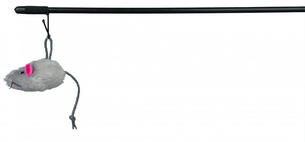Wędka z futrzana myszką na gumce. Zabawka pobudzająca naturalny instynkt łowiecki kota. Dodatek kocimiętki zachęci go jeszcze bardziej do zabawy.