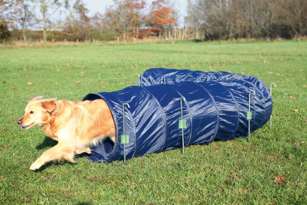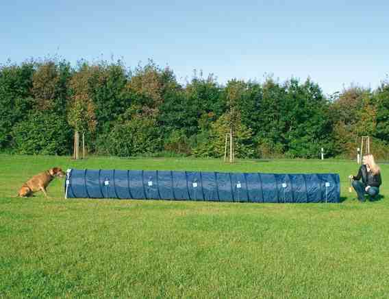 Rozszerzony tunel zręcznościowy posiada specjalny fragment bez wzmocnień, zmuszający psa do przebrnięcia przez opadający materiał. Tunel jest pomocny w różnorodnych programach szkolenia psa a także, co równie ważne, ułatwia utrzymanie psa w doskonałej kondycji. Zabawy z wykorzystaniem tunelu intensyfikują związek pomiędzy opiekunem a psem oraz pogłębiają zaufanie psa wobec opiekuna. Tunel wykonany jest z nylonu, montaż jest bardzo prosty i szybki. Wyposażenie zawiera haki i kołki montażowe. Dostępny w rozmiarze dla dużych lub małych psów.