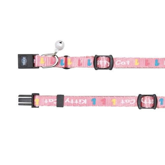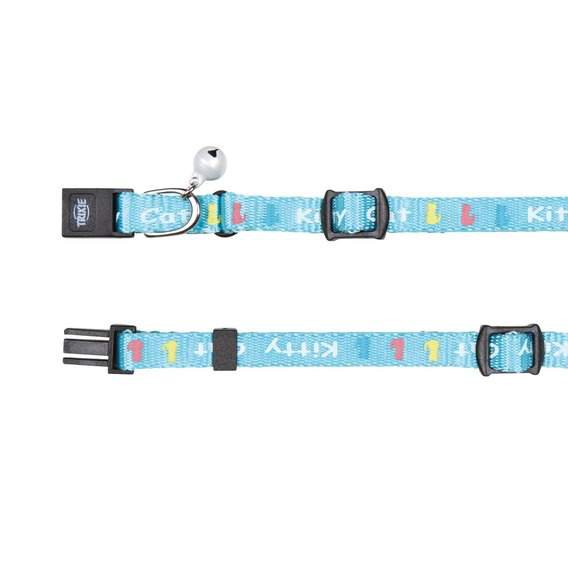 Nylonowa obroża dla kota z małym dzwoneczkiem i napisami. Posiada plastikowe zapięcie. Obroża bardzo przydatna dla kotów ciekawskich, preferujących wycieczki. Rozmiar dla małych kotów i kociąt. Dostępna w różnych kolorach.