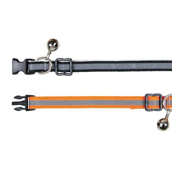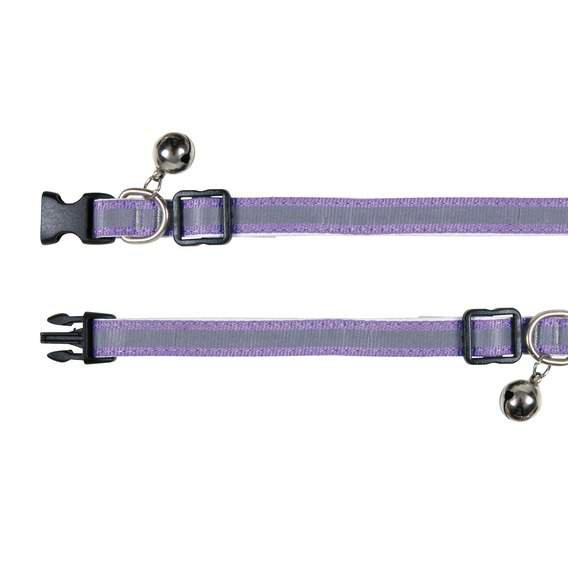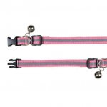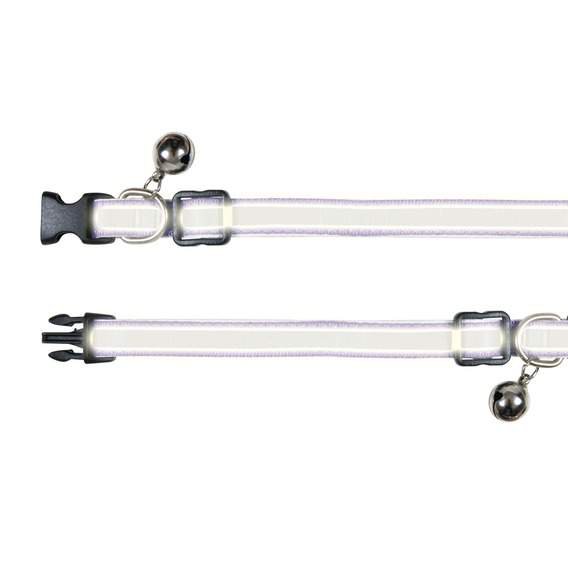 Nylonowa obróżka odblaskowa z dzwoneczkiem. Teraz nawet w półmroku i ciemności twój kotek będzie lepiej widoczny dla Ciebie i kierowców, aby uchronić go przed potrąceniem. Obróżka posiada szeroką regulację i można dopasować ją do szyi każdego kota, oraz "klips bezpieczeństwa" który otwiera się w nagłych przypadkach. Klips otwiera się automatycznie kiedy kotek zahaczy się lub utknie. Bez stresu i niebezpieczeństwa kotek będzie mógł się sam oswobodzić. Przeznaczona dla małych kotów lub kociąt.