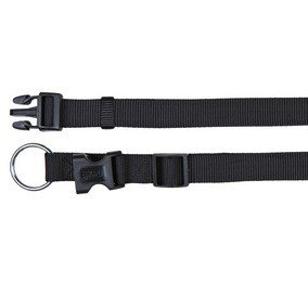 Obroże wykonane są z tej samej taśmy, co smycze, umożliwia to tworzenie ładnych kompletów. Wyposażone są w laną klamrę plastikową, półkółko do zapinania karabińczyka od smyczy i przeszywane są specjalną nicią. Obroże dostępne są w różnych rozmiarach.