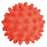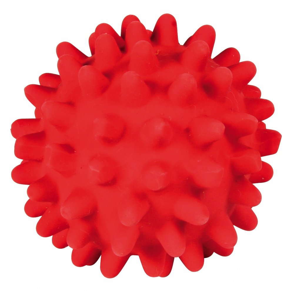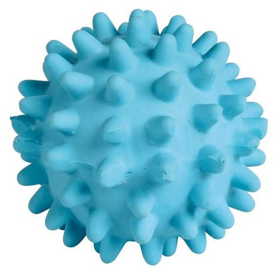 Lateksowa piłka z kolcami do zabawy dla psa. Wykonana została z materiałów wytrzymałych, najlepszej jakości. Idealna dla aktywnych psów. Piłka wydaje dźwięki, a jej kolce delikatnie masują dziąsła Waszego pupila. Lateks jest materiałem przyjaznym dla psich zębów, a nawet żołądków. Pogryziony na kawałki i połknięty przez psa nie zaszkodzi pupilowi, gdyż bez problemu przechodzi przez przewód pokarmowy. Lateks nie twardnieje wewnątrz żołądka lub jelit.