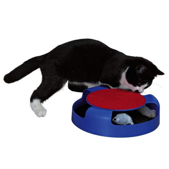 Zabawka z ruchomą myszką, która przy lekkim potrąceniu przez kocią łapkę zostaje wprawiona w ruch. Wyzwala u kota naturalny instynkt łowienia. Pokryta sizalem, pozwala w bezpieczny sposób tępić pazurki i zapobiega ich wrastaniu.
